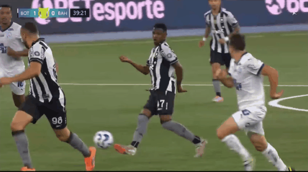 40' - 第1张黄牌,裁判出示了本场比赛的第一张黄牌,给了巴伊亚