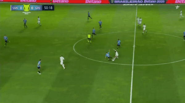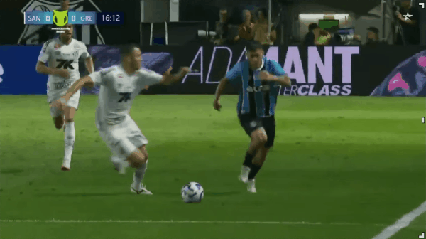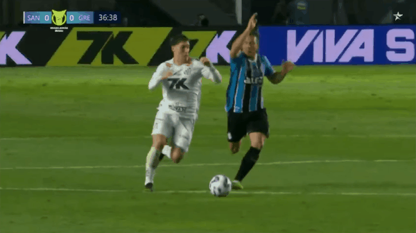 17' - 第1张黄牌,裁判出示了本场比赛的第一张黄牌,给了桑托斯