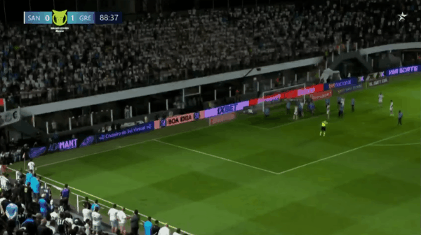 14' - 比赛第14分钟,桑托斯取得了本场比赛的第1个角球