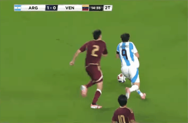 60' - 第1张黄牌,裁判出示了本场比赛的第一张黄牌,给了委内瑞拉