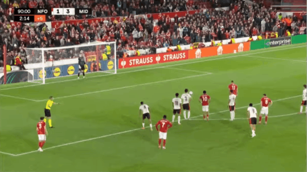 90+3' - 第14个射正 - (诺丁汉森林)