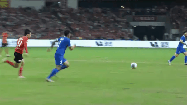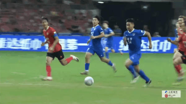 33'- 第1张黄牌,裁判出示了本场比赛的第一张黄牌,给了尹韩龙(南通队)