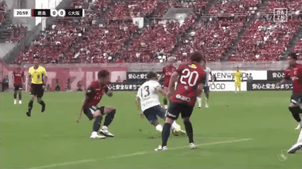 22' - 第1张黄牌,裁判出示了本场比赛的第一张黄牌,给了鹿岛鹿角