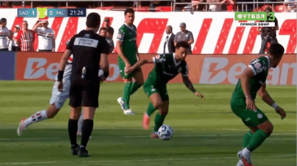 11' - 第1张黄牌,裁判出示了本场比赛的第一张黄牌,给了帕尔梅拉斯