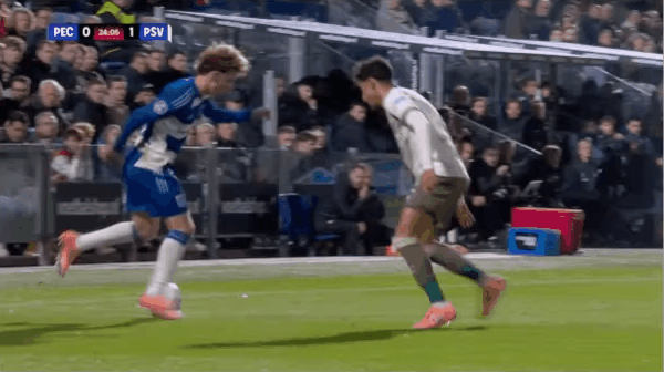 24' - 第1张黄牌,裁判出示了本场比赛的第一张黄牌,给了埃因霍温
