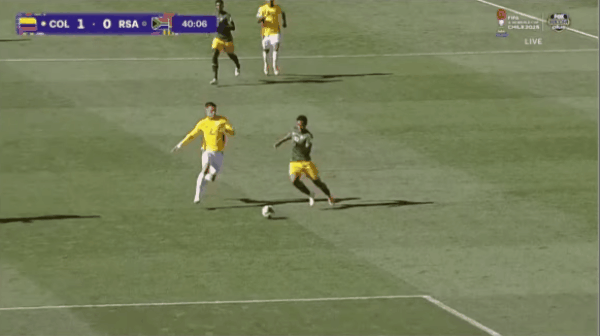 40' - 第1张黄牌,裁判出示了本场比赛的第一张黄牌,给了(哥伦比亚U20)