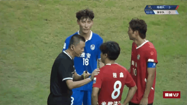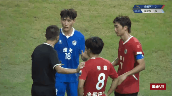 33'- 第1张黄牌,裁判出示了本场比赛的第一张黄牌,给了尹韩龙(南通队)