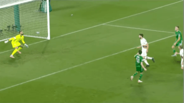 5' - 比赛第5分钟,爱尔兰取得了本场比赛的第1个角球